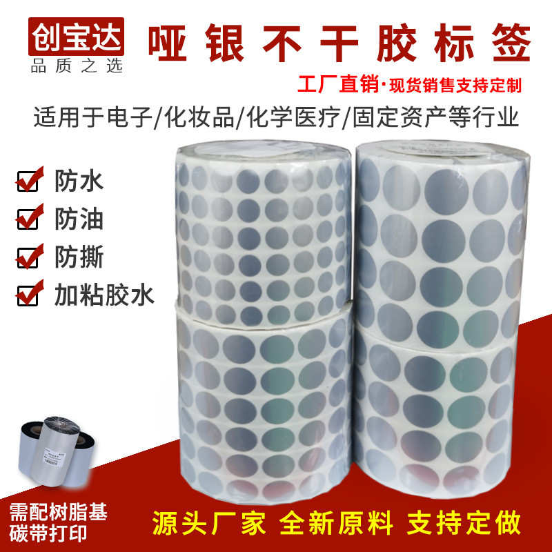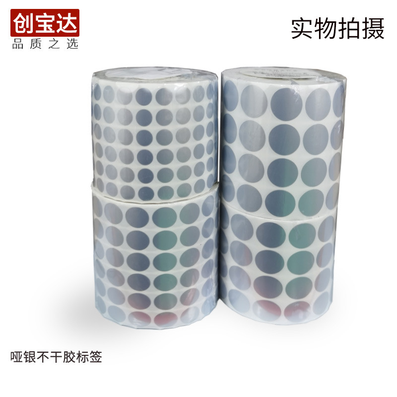 【規(guī)格】卷裝現(xiàn)貨圓形亞銀PET標(biāo)簽紙5 10 15 20 25 30 35 40 50 60 70 80 90 100MM銀可定制